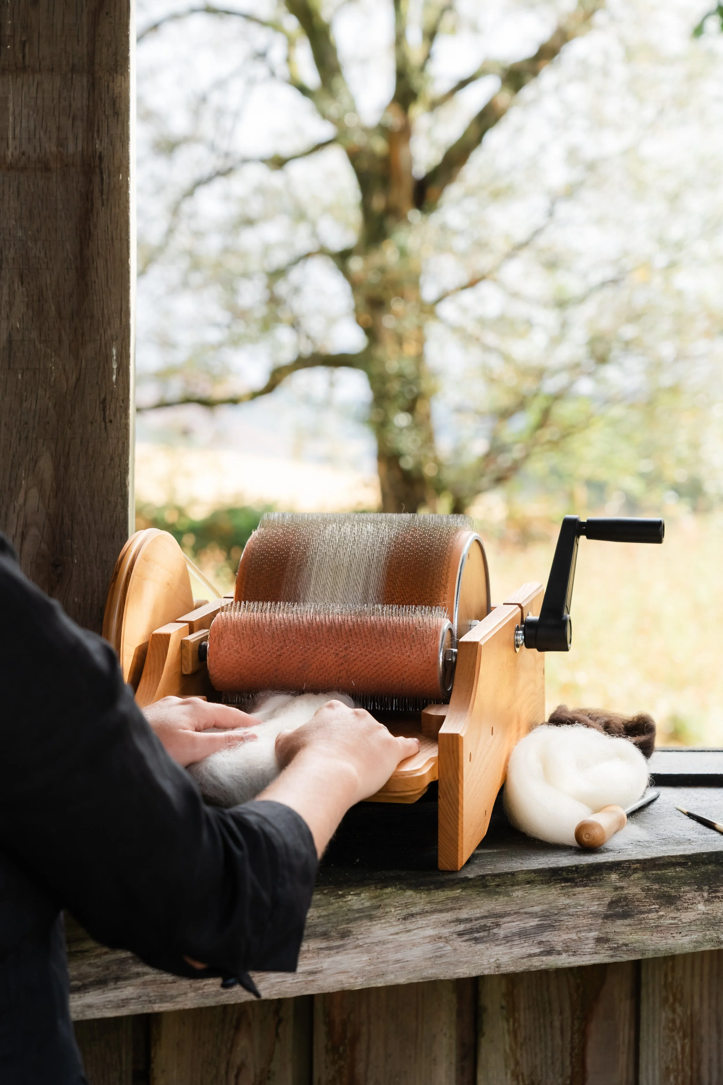 For whichever time you are meeting in your life I will gently guide you to create natural dyes working with plants and trees who make themselves known to you, to blend wools with a drum carder, spin yarn on a drop spindle or Spinning wheel, warp the loom and weave your shawl. I work with the craft in a ceremonial way, which honours our Ancestors, and the Animate Earth we live with and one's journey here.